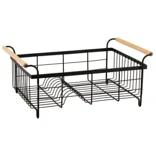 B&M Black Dish Drainer With Wooden Handles