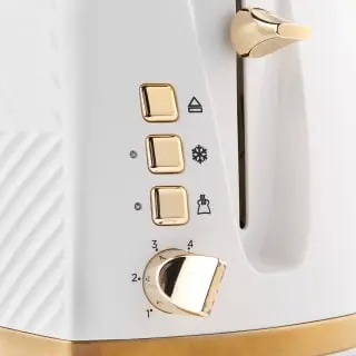 The Groove Toaster combines design credentials such as textured plastic with gold accents, and all the technical features that make life easier.
